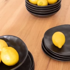 Kare Design Assiettes Plates Assiette Plate En Grès Noir D20 – Lot De 4