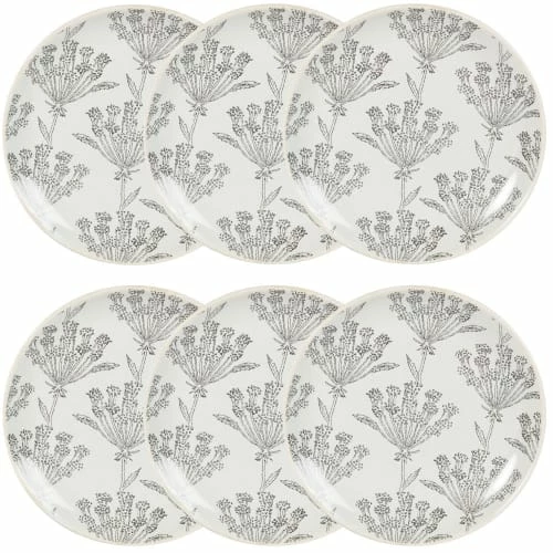 Maisons Du Monde Assiettes à Dessert Assiette à Dessert En Grès écru à Motifs Gris Anthracite – Lot De 6
