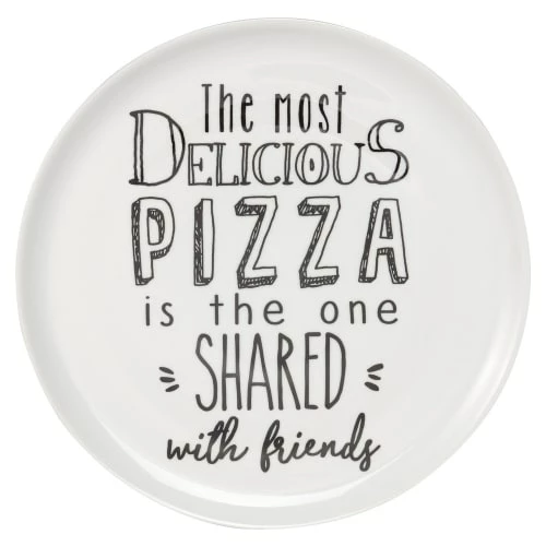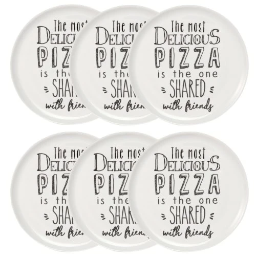 Maisons Du Monde Assiettes Plates Assiette à Pizza En Porcelaine Blanche Imprimée – Lot De 6