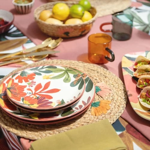 Maisons Du Monde Assiettes Plates Assiette Plate En Grès Ivoire Et Motif Végétal Multicolore – Lot De 6