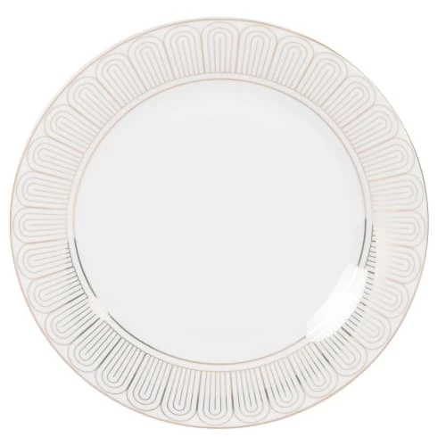 Maisons Du Monde Assiettes Plates Assiette Plate En Porcelaine Blanche à Bord Doré – Lot De 6