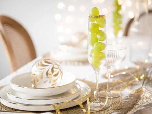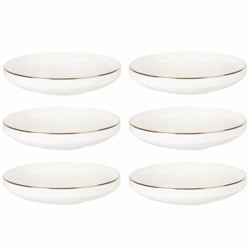 Maisons Du Monde Vaisselle De Noël Assiette Creuse En Porcelaine Blanche Et Dorée – Lot De 6