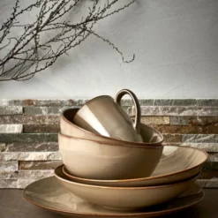 ONA Assiettes Creuses Assiette Creuse 22xH5cm Beige – Lot De 4