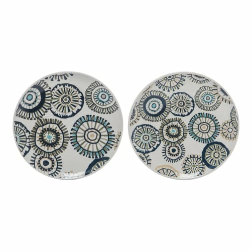 Ensemble de deux assiettes à dessert CANDYrondes avec des motifs circulaires bleus abstraits qui rappellent les fleurs. Ces assiettes au design coloré conviennent pour présenter vos apéritifs et desserts lors de grandes tablées.Elles s’accordent parfaitement avec les autres produits de la gammeCANDY. Existent aussi en format rectangulaire.