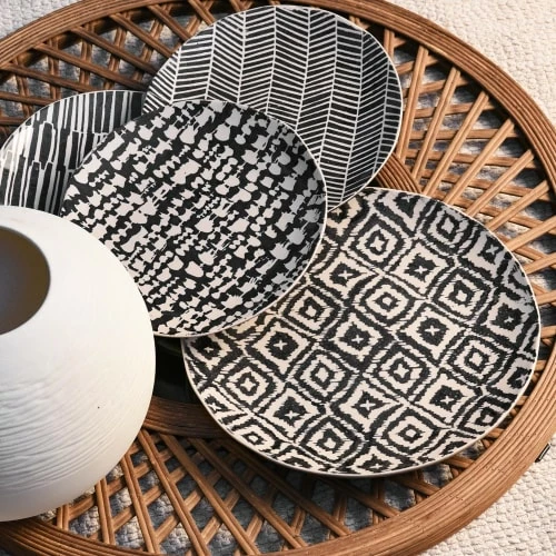 Table Passion Coffret De 4 Assiettes à Dessert 22 Cm En Grès Noir